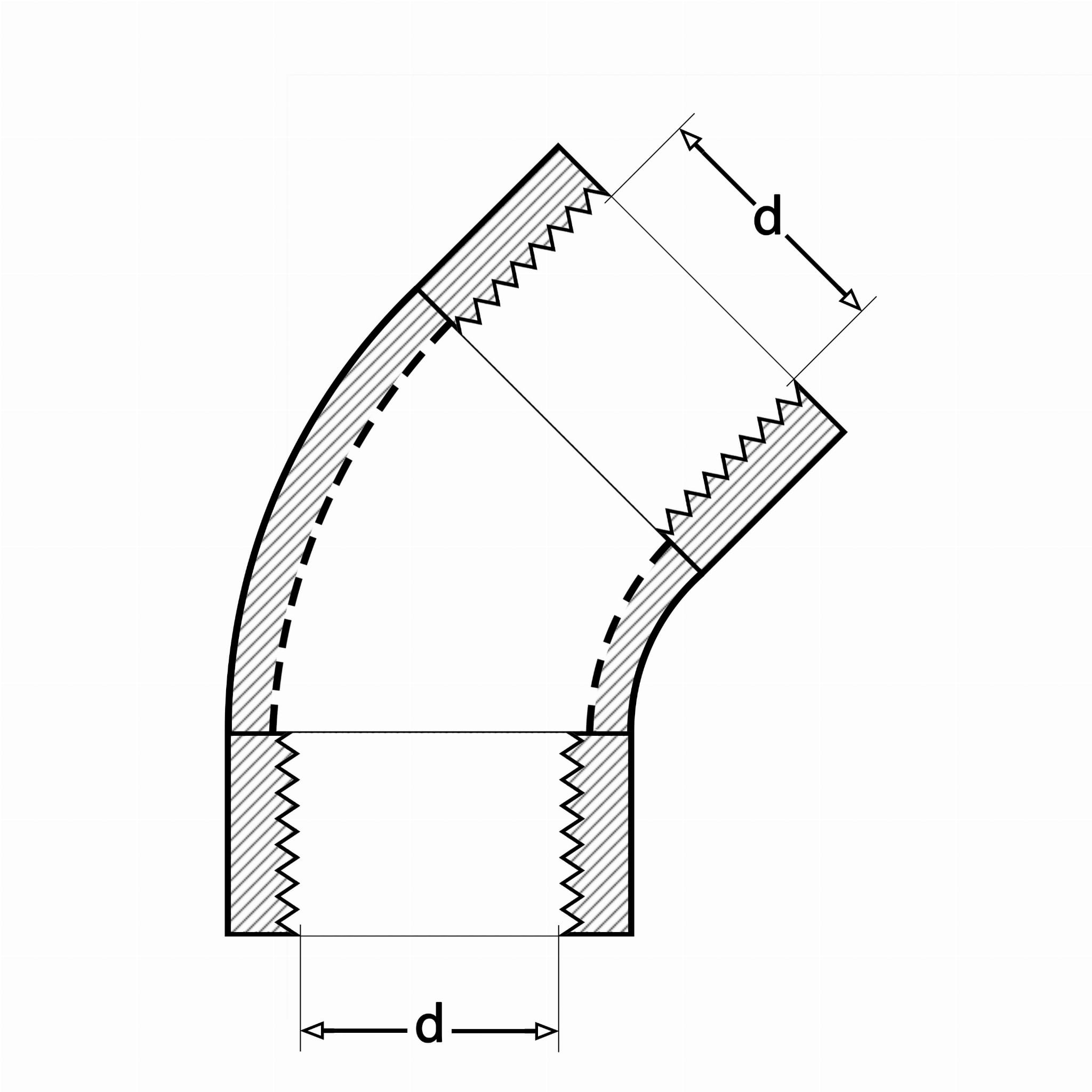 Typ / budowa: Kolano 45 stopni, na rurę średnicy 21,3 mm